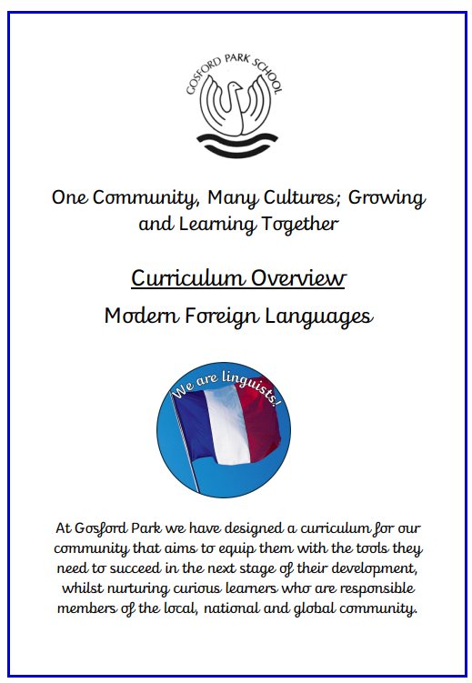 At Gosford Park we endeavour to develop a love of languages through the teaching of MFL (modern foreign language) in a fun and enjoyable way. We have chosen to teach French as our MFL in KS2, and this is to ensure pupils have a solid foundation before they move into the next phase of their education. We aim to instil a love of language learning and an awareness of other cultures through teaching French. We want pupils to develop confidence to communicate in French for practical purposes, using all the skills of language learning listening, reading, writing, and speaking.